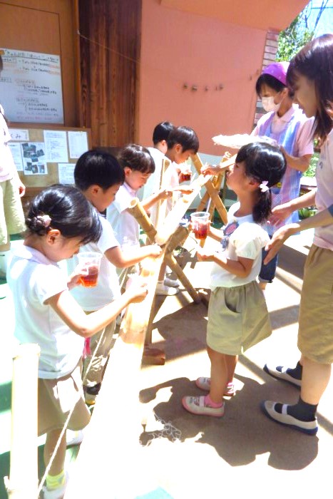 「流しそうめんです」(流れてくるのは うどん と 冷や麦😁)どうしてかは 少し先に理由が記載されております↓